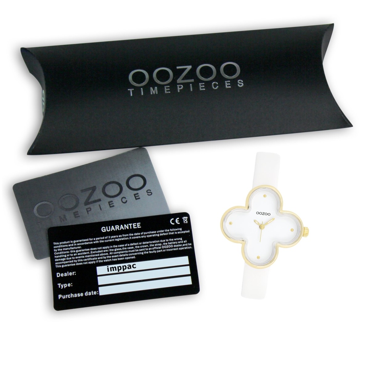Die Fashion Uhr für Damen aus der exklusiven Oozoo Oozoo Timepieces-Kollektion hat ein hochwertiges Leder-Armband in weiß . Das Gehäuse der Uhr ist extra groß (ca. 32x32mm). Das analoge Uhrwerk und das Uhrenglas aus Mineralglas machen diese Armbanduhr zu einem schönen und modischen Accessoire.- besondere Eigenschaften