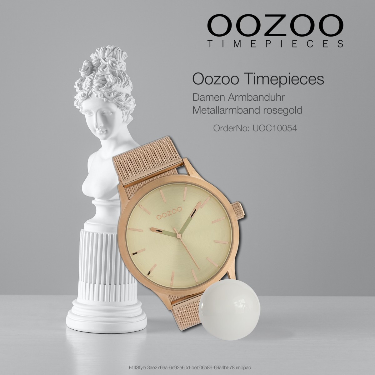 Diese Fashion Uhr für Damen aus der exklusiven Oozoo Oozoo Timepieces-Kollektion verfügt über ein hochwertiges Metall -Armband in rosegold. Das Gehäuse der Uhr ist groß (ca. 45mm). Das analoge Uhrwerk und das Uhrenglas aus Mineralglas machen diese Armbanduhr zu einem hochwertigen und modischen Begleiter.- besondere Eigenschaften