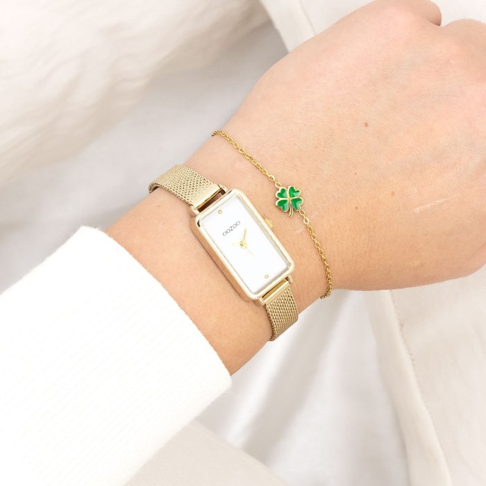 Die Fashion Uhr für Damen aus der exklusiven Oozoo Oozoo Timepieces-Kollektion hat ein hochwertiges Metall-Armband in gold . Das Gehäuse der Uhr ist extra groß (ca. 19x31mm). Das analoge Uhrwerk und das Uhrenglas aus Mineralglas machen diese Armbanduhr zu einem schönen und modischen Accessoire.- besondere Eigenschaften
