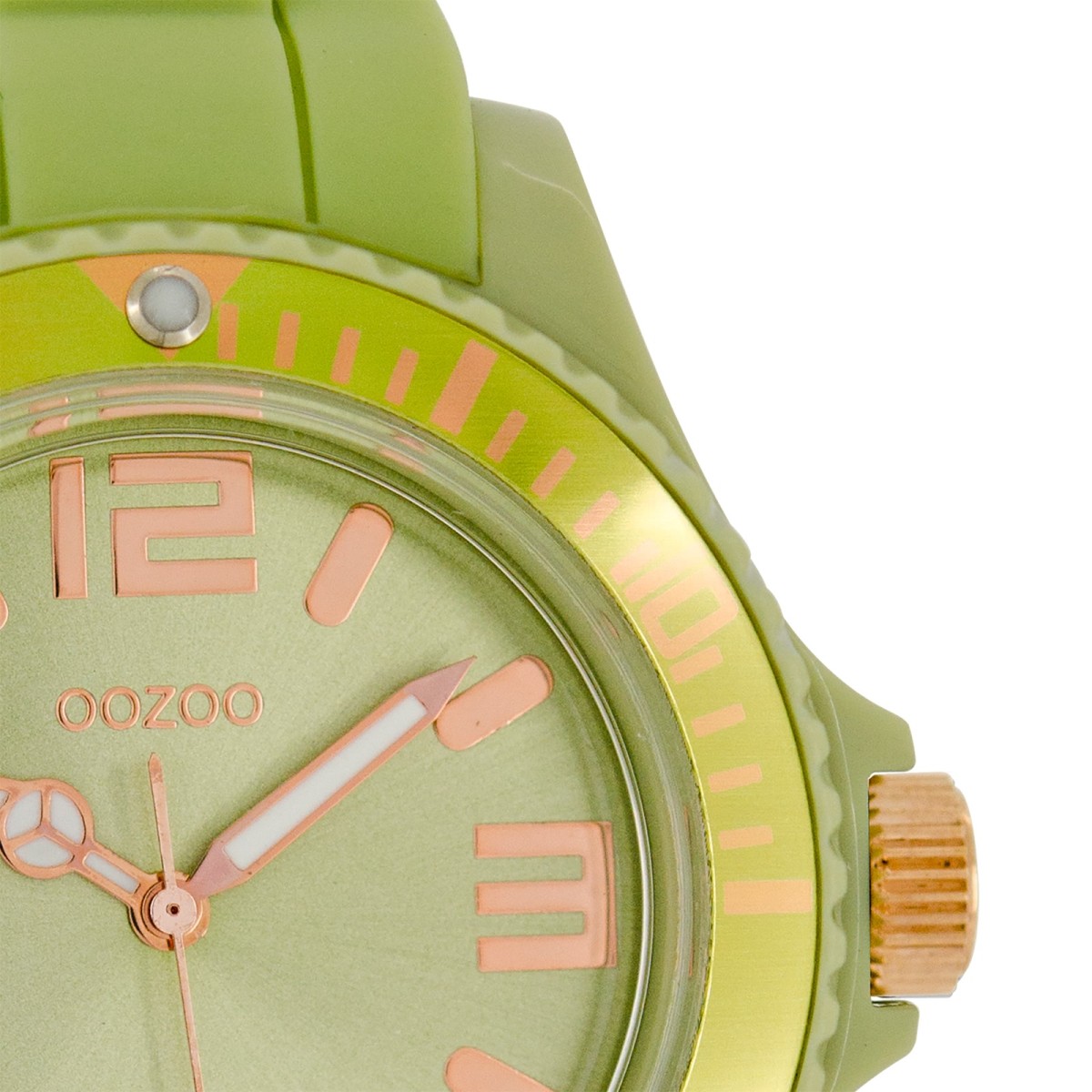 Diese Fashion Uhr für Damen aus der exklusiven Oozoo Oozoo Timepieces-Kollektion verfügt über ein hochwertiges Silikon-Armband in grün. Das Gehäuse der Uhr ist groß (ca. 43mm). Das analoge Uhrwerk und das Uhrenglas aus Mineralglas machen diese Armbanduhr zu einem hochwertigen und modischen Begleiter.- besondere Eigenschaften