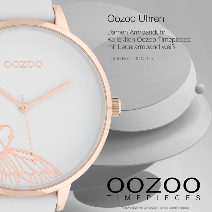 Diese Fashion Uhr für Damen aus der exklusiven Oozoo Timepieces-Kollektion verfügt über ein hochwertiges Leder-Armband in weiß. Das analoge Quarzwerk und die Wasserdichte bis 3 bar machen diese Armbanduhr zu einem besonders zuverlässigen Begleiter.- besondere Eigenschaften