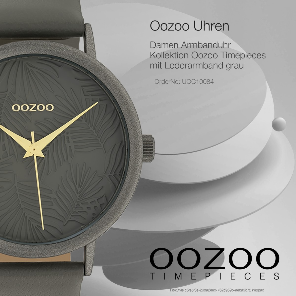 Diese Fashion Uhr für Damen aus der exklusiven Oozoo Timepieces-Kollektion verfügt über ein hochwertiges Leder-Armband in grau. Das analoge Quarzwerk und die Wasserdichte bis 3 bar machen diese Armbanduhr zu einem besonders zuverlässigen Begleiter.- besondere Eigenschaften
