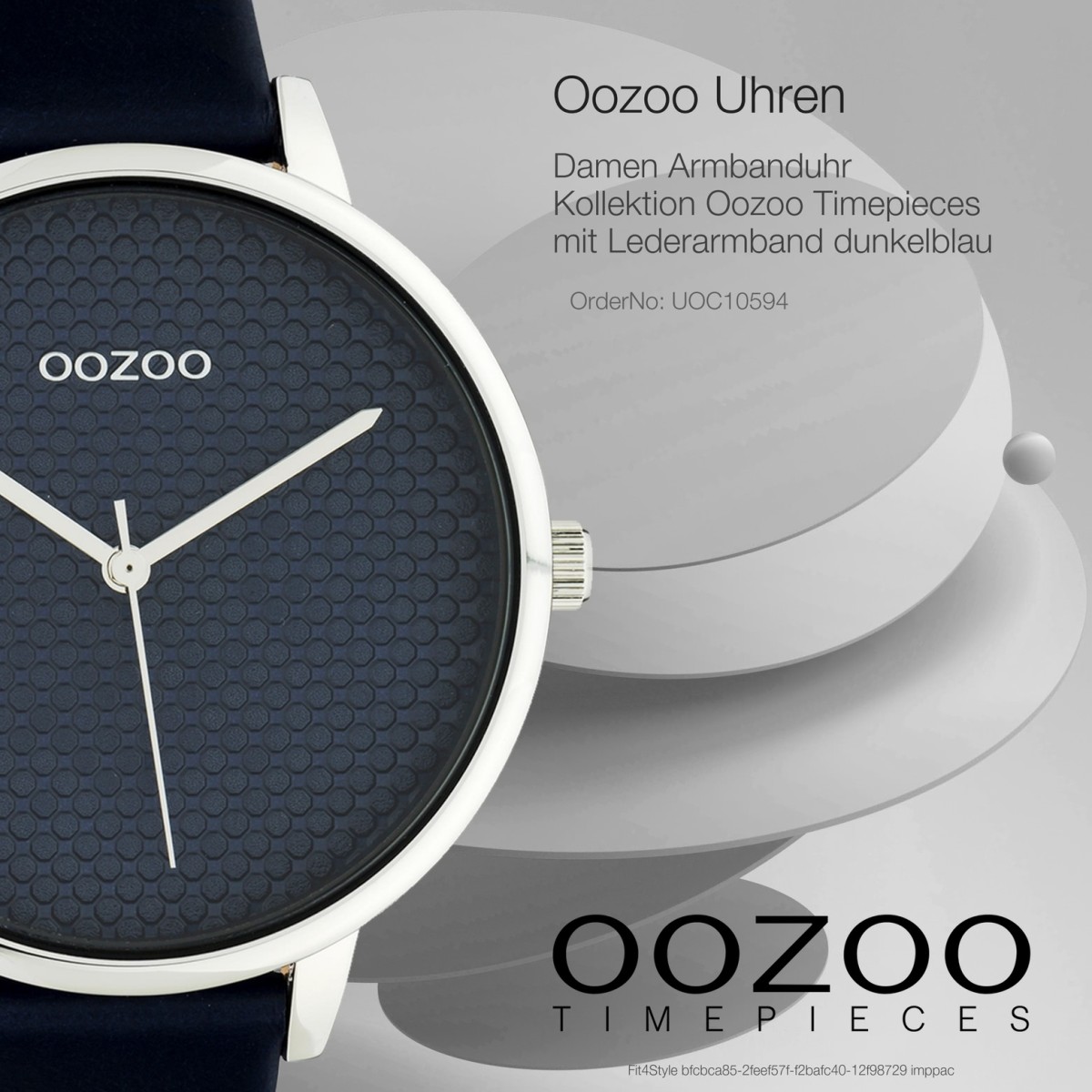 Diese Fashion Uhr für Damen aus der exklusiven Oozoo Timepieces-Kollektion verfügt über ein hochwertiges Leder-Armband in dunkelblau. Das analoge Quarzwerk und die Wasserdichte bis 3 bar machen diese Armbanduhr zu einem besonders zuverlässigen Begleiter.- Besonderheiten: