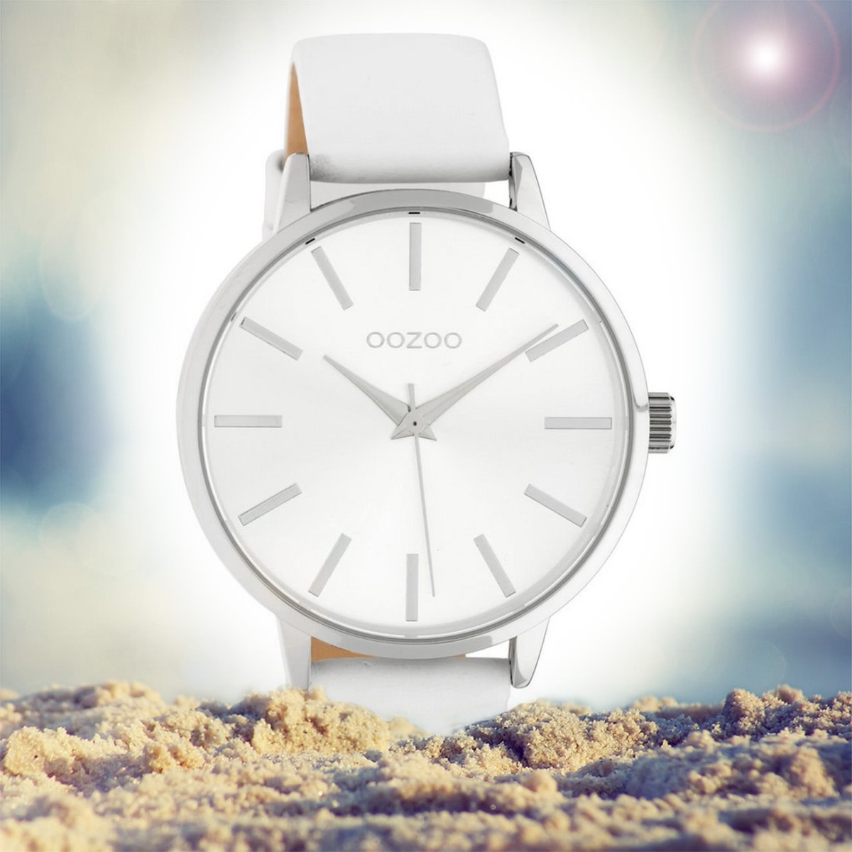 Diese Fashion Uhr für Damen aus der exklusiven Oozoo Timepieces-Kollektion verfügt über ein hochwertiges Leder-Armband in weiß. Das analoge Quarzwerk und die Wasserdichte bis 3 bar machen diese Armbanduhr zu einem besonders zuverlässigen Begleiter.- besondere Eigenschaften