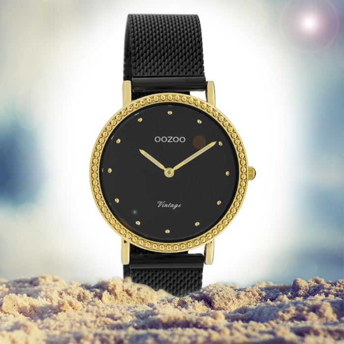 Diese Fashion Uhr für Damen aus der exklusiven Oozoo Vintage Series-Kollektion verfügt über ein hochwertiges Edelstahl-Armband in schwarz. Das analoge Quarzwerk und die Wasserdichte bis 3 bar machen diese Armbanduhr zu einem besonders zuverlässigen Begleiter.- Besonderheiten: