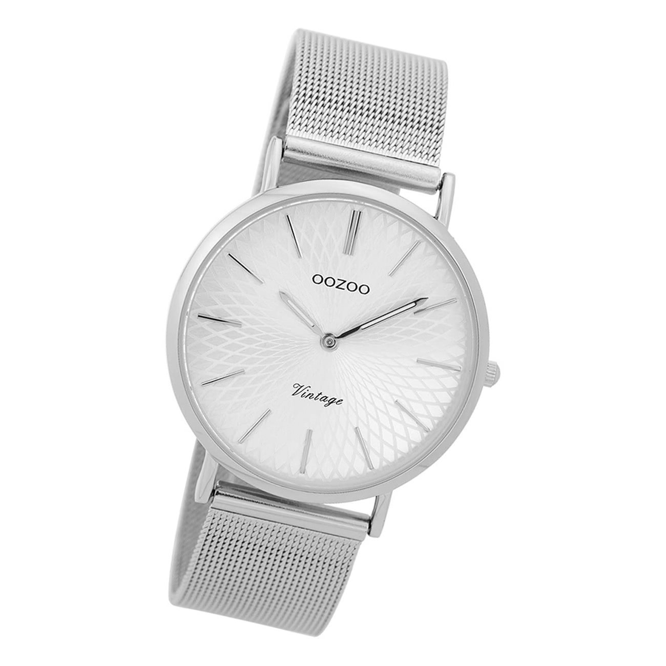 Diese Fashion Uhr für Damen aus der exklusiven Oozoo Vintage Series-Kollektion verfügt über ein hochwertiges Edelstahl-Armband in silber. Das analoge Quarzwerk und die Wasserdichte bis 3 bar machen diese Armbanduhr zu einem besonders zuverlässigen Begleiter.- Besonderheiten: