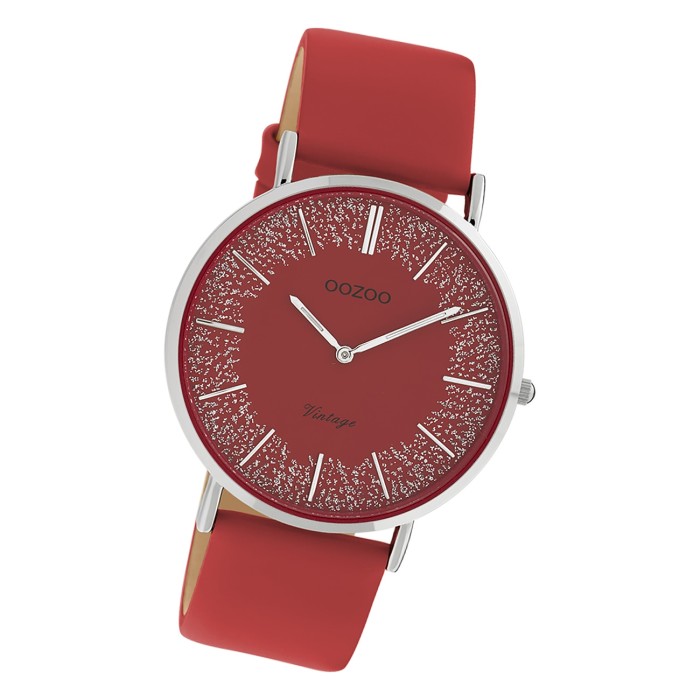 Diese Fashion Uhr für Damen aus der exklusiven Oozoo Vintage Series-Kollektion verfügt über ein hochwertiges Leder-Armband in rot. Das analoge Uhrwerk und eine Wasserdichtigkeit bis 3 bar machen diese Armbanduhr zu einem besonders zuverlässigen Begleiter.- besondere Eigenschaften
