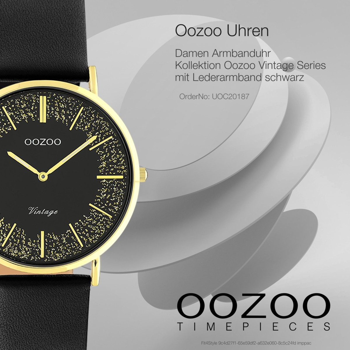 Diese Fashion Uhr für Damen aus der exklusiven Oozoo Oozoo Vintage Series-Kollektion verfügt über ein hochwertiges Leder-Armband in schwarz. Das analoge Uhrwerk und eine Wasserdichtigkeit bis 3 bar machen diese Armbanduhr zu einem besonders zuverlässigen Begleiter.Die Vintage Kollektion von Oozoo besticht durch die schlichten, aber dennoch besonderen Designs. Dezente Farben und Ziffernblätter ohne viel Schnickschnack bilden die Grundlage dieser Uhrenmodelle.