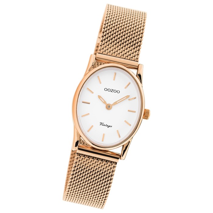 Diese Fashion Uhr für Damen aus der exklusiven Oozoo Oozoo Vintage Series-Kollektion verfügt über ein hochwertiges Metall, Mesh-Armband in roségold. Das analoge Uhrwerk und eine Wasserdichtigkeit bis 3 bar machen diese Armbanduhr zu einem besonders zuverlässigen Begleiter.- besondere Eigenschaften