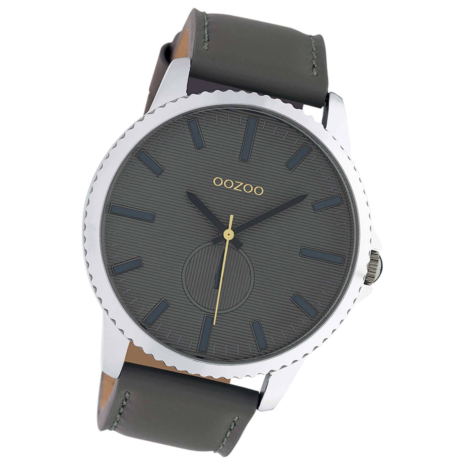 Diese Fashion Uhr für Damen und Herren aus der exklusiven Oozoo Oozoo Timepieces-Kollektion verfügt über ein hochwertiges Leder-Armband in grau. Das Gehäuse der Uhr ist extra groß (ca. 48mm). Das analoge Uhrwerk und das Uhrenglas aus Mineralglas machen diese Armbanduhr zu einem hochwertigen und modischen Begleiter.- besondere Eigenschaften