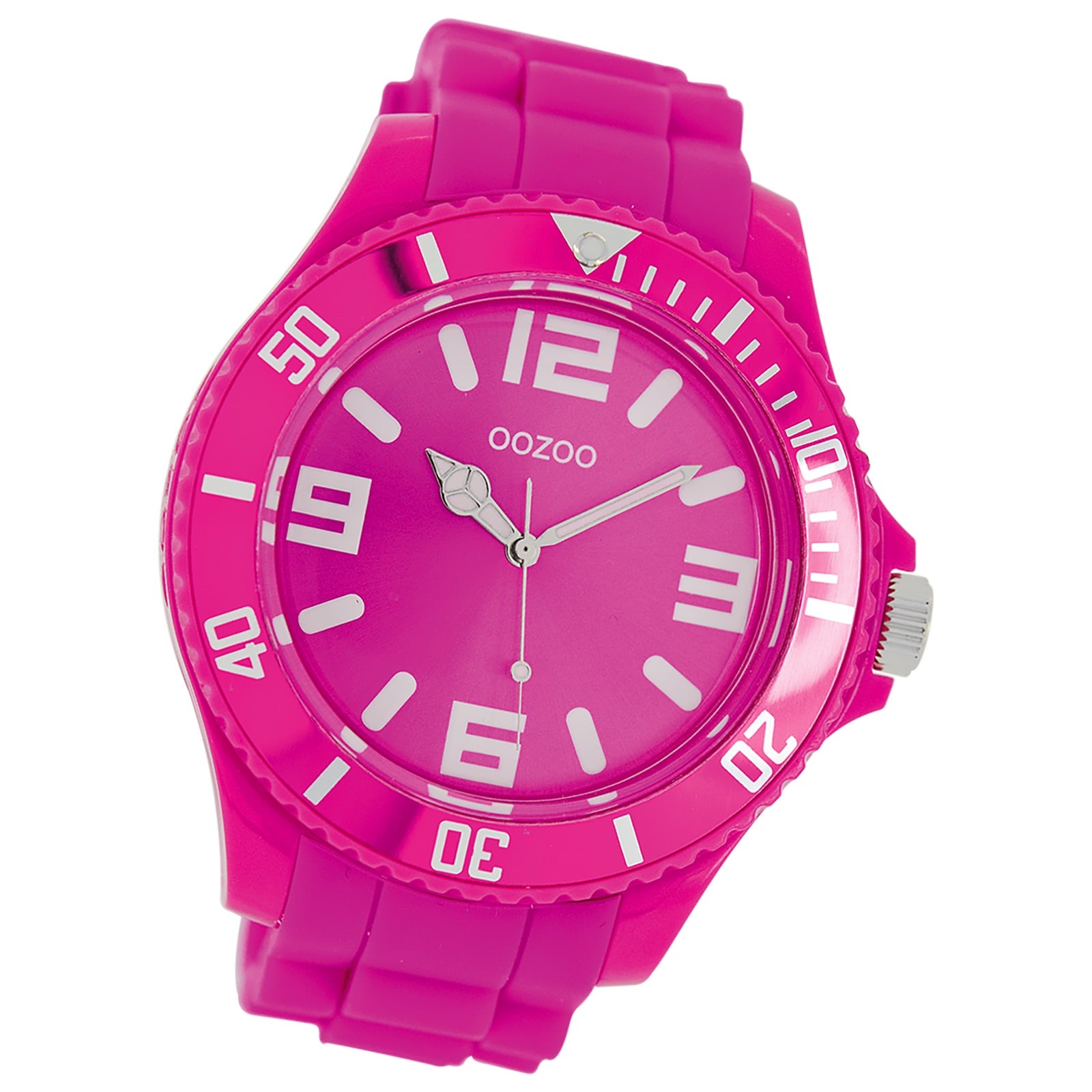 Diese Fashion Uhr für Damen und Herren aus der exklusiven Oozoo Oozoo Vintage Series-Kollektion verfügt über ein hochwertiges Silikon-Armband in pink. Das Gehäuse der Uhr ist extra groß (ca. 48mm). Das analoge Uhrwerk und das Uhrenglas aus Mineralglas machen diese Armbanduhr zu einem hochwertigen und modischen Begleiter.- besondere Eigenschaften