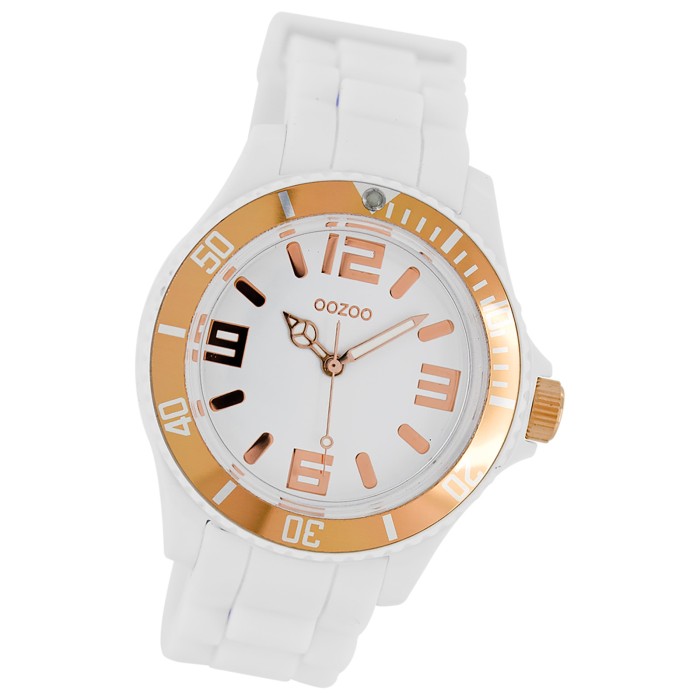 Diese Fashion Uhr für Damen und Herren aus der exklusiven Oozoo Oozoo Vintage Series-Kollektion verfügt über ein hochwertiges Silikon-Armband in weiß. Das Gehäuse der Uhr ist groß (ca. 43mm). Das analoge Uhrwerk und das Uhrenglas aus Mineralglas machen diese Armbanduhr zu einem hochwertigen und modischen Begleiter.- besondere Eigenschaften