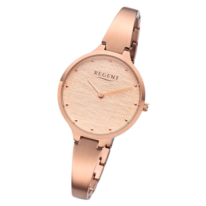 Diese elegante Uhr für Damen aus der exklusiven Regent Metallarmband-Kollektion verfügt über ein hochwertiges Edelstahl-Armband in rosa. Das analoge Quarzwerk und die Wasserdichte bis 3 bar machen diese Armbanduhr zu einem besonders zuverlässigen Begleiter.- besondere Eigenschaften