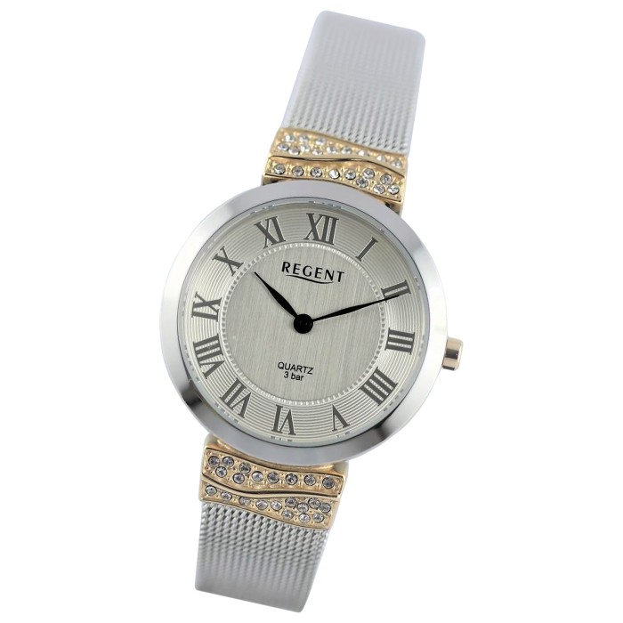 - Schlüsselworte: Damenuhren, Analoguhren, Quarzuhren, Regent, Metall, Armbanduhren