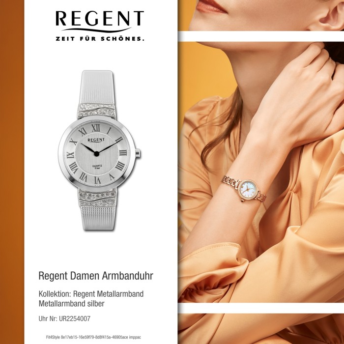 - Schlüsselworte: Damenuhren, Analoguhren, Quarzuhren, Regent, Metall, Armbanduhren