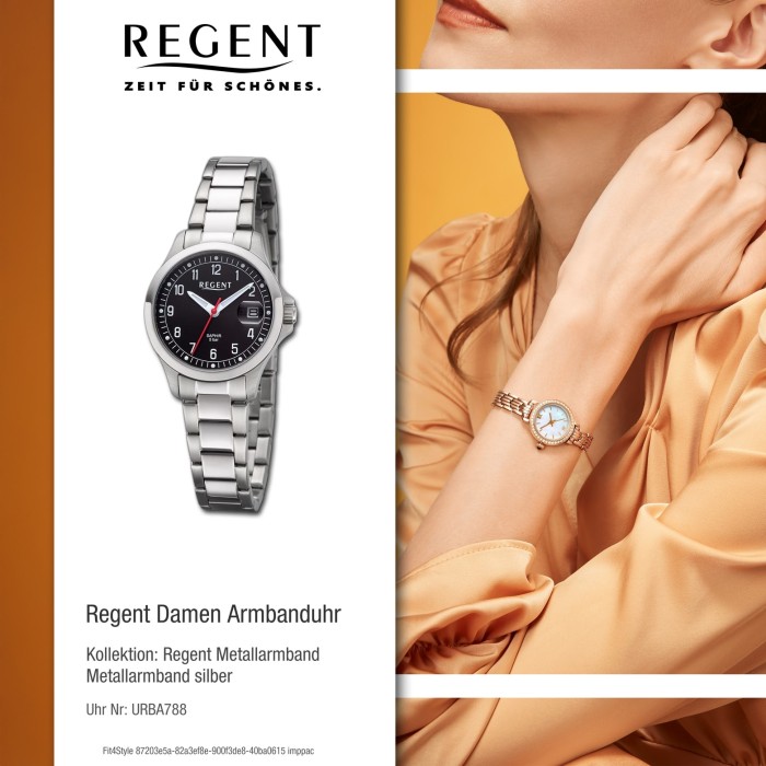 - Schlüsselworte: Damenuhren, Analoguhren, Quarzuhren, Regent, Metall, Armbanduhren