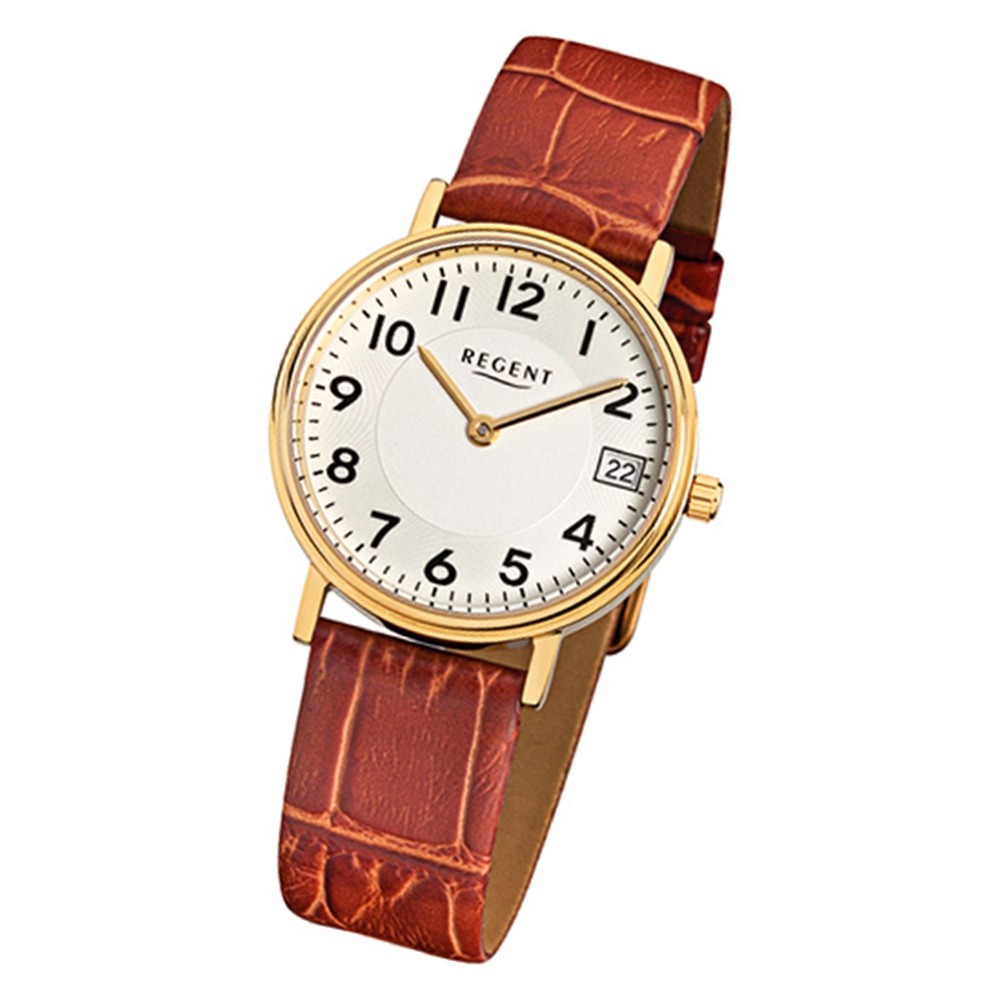 Regent Damen-Armbanduhr F-328 Quarz-Uhr Leder-Armband braun URF328