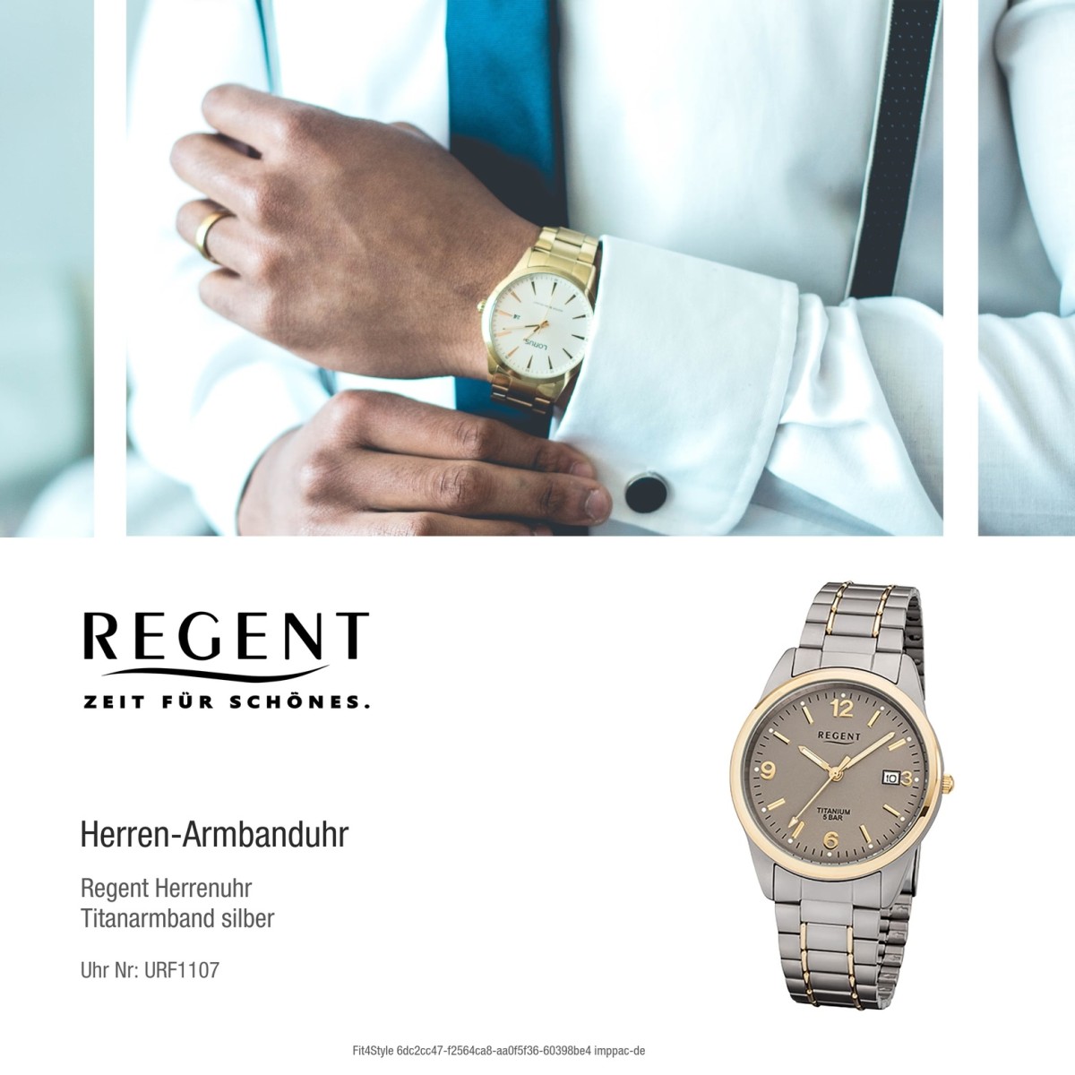 Regent Herren-Armbanduhr 32-F-1107 Quarz-Uhr Titan-Armband silber grau gold URF1107