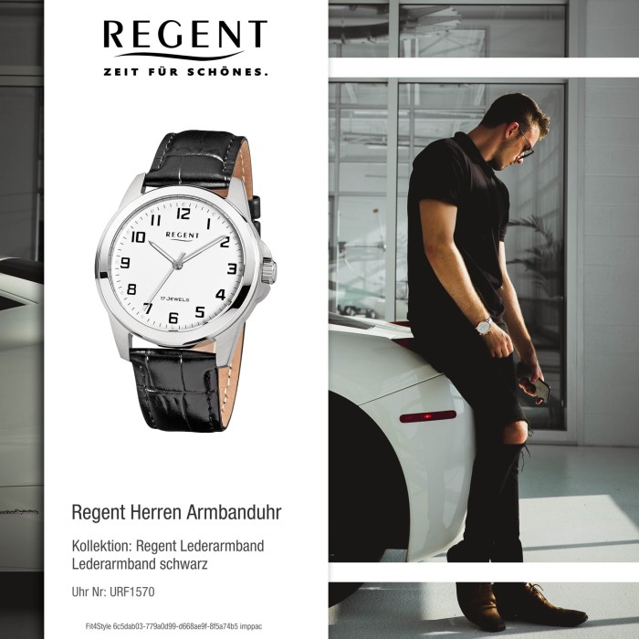 - Schlüsselworte: Herrenuhren, Analoguhren, Regent, Mechanische Uhren, Leder, Armbanduhren