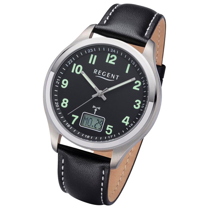 - Schlüsselworte: Herrenuhren, Analoguhren, Digitaluhren, Analog-Digitaluhren, Quarzuhren, Regent, Funkuhren, Titan, Leder