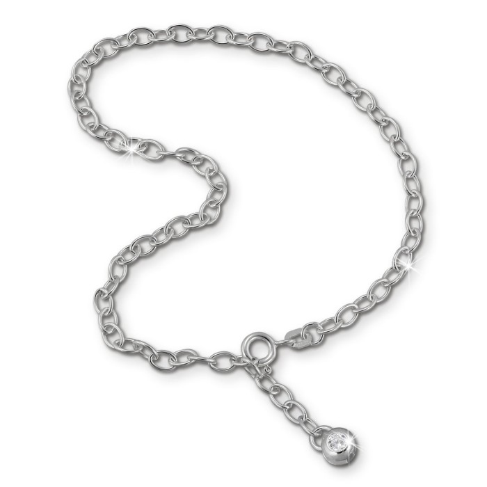 Fußkette mit Zirkonia 25cm mit Karabinerverschluss aus unserer einzigartigen SilberDream Kollektion aus anlaufgeschütztem 925 Sterling Silber.