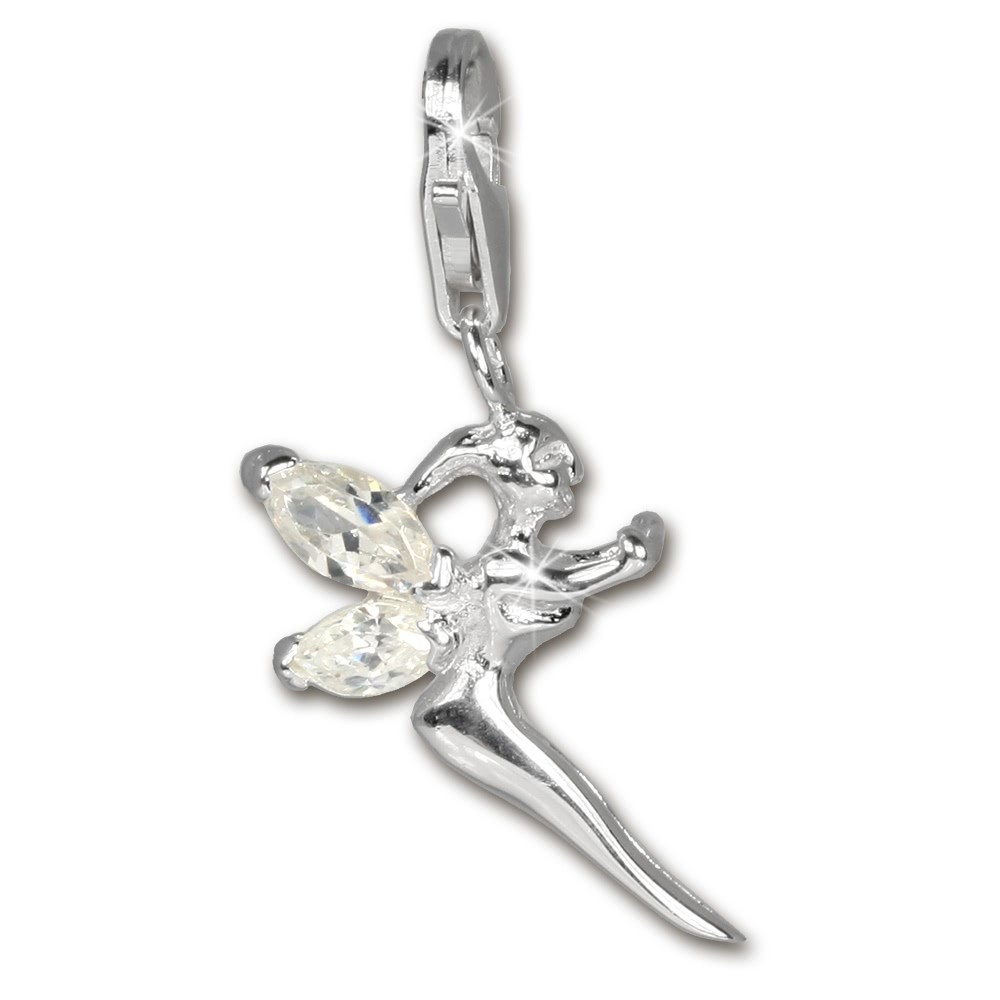 Charm Bettelarmband Anhänger aus anlaufgeschütztem 925 Sterling Silber - Elfe mit weißen Zirkoniaflügeln - .