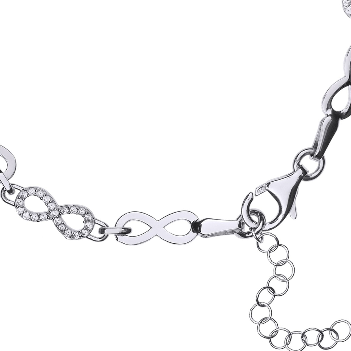 Ein edles Armband - Infinity - mit ca. 18cm - 21cm Länge mit Karabinerverschluss. Die Glieder in Unendlichkeit-Form sind abwechselnd poliert und mit Zirkonia besetzt. Es ist aus der einzigartigen SilberDream Schmuck Kollektion und aus allergenfreiem, anlaufgeschütztem und poliertem 925 Sterling Silber.