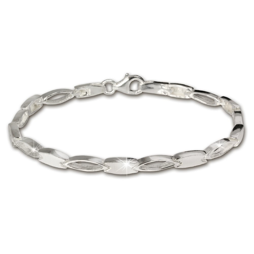 Ein brillantes Armband aus ovalen, matten und glänzenden Ketten-Gliedern 18,5cm mit Karabinerverschluss aus unserer einzigartigen SilberDream Schmuck Kollektion aus anlaufgeschütztem 925 Sterling Vollsilber. Dieses Silberarmband ist auch im Set (mit Collier Kette) erhältlich.