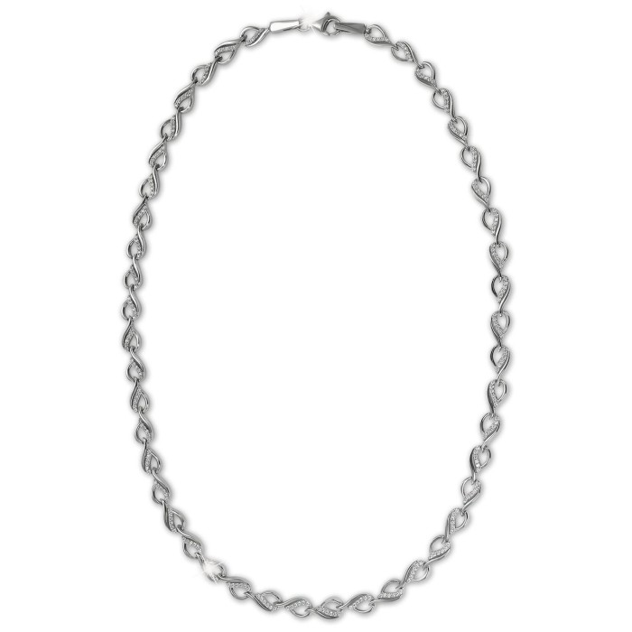 Eine edles Collier Halskette Dream Zirkonia weiß in der Länge 45cm mit Karabinerverschluss. Die Kette ist aus der einzigartigen SilberDream Schmuck Kollektion und aus allergenfreiem und poliertem 925 Sterling Silber.Die polierten Glieder sind mit vielen kleinen funkelnden Zirkonias besetzt. Diese Halskette ist auch im Set (mit Armband) erhältlich.