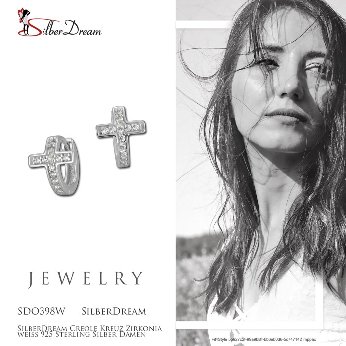 - Kurzbeschreibung: SilberDream Damenohrringe Creole Zirkonia Kreuz 925er Silber