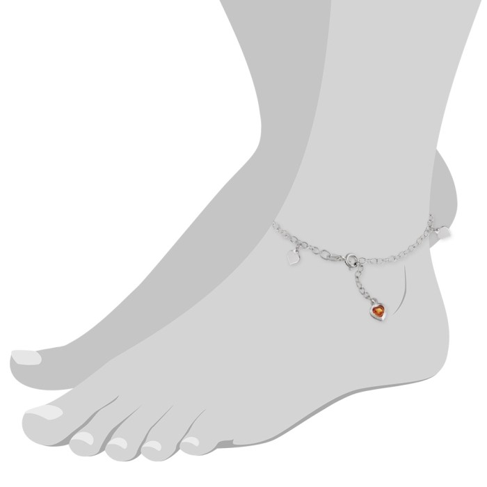 Eine Fußkette Herz Zirkonia bernstein mit Karabinerverschluss aus unserer einzigartigen SilberDream Kollektion aus anlaufgeschütztem 925 Sterling Silber. An der Fußkette hängen viele kleine Silberherzen und am Ende der Fußkette ist ein bernstein farbenes Zirkonia-Herz. Die Fußkette ist 25cm lang und man kann den Karabiner in jedes Kettenglied einhängen.