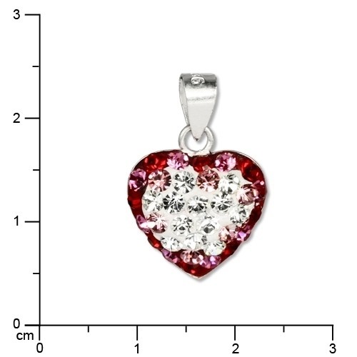 Ein Ketten Anhänger Herz mit Zirkonia Kristallen rot ICE und 925 Sterling Silber, geeignet für Halsketten bis zu einer Stärke von 2mm. Die Kristalle erstrahlen auf dem Anhänger im Velauf rot bis weiß.