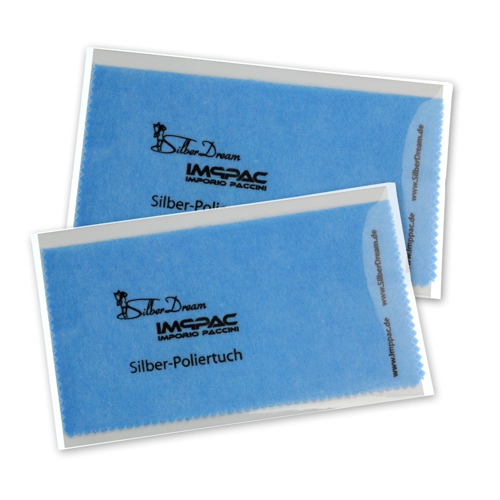 Zwei Stück Set SilberDream Imppac Schmuckreinigungs und -poliertücher blau zur Reinigung und Pflege von Schmuck speziell für Ringe, Ohrringe, Beads und Charms, Armbänder und Ketten der Fit4Style Silberschmuck Kollektion, aber auch für alle anderen Schmuckstücke geeignet.