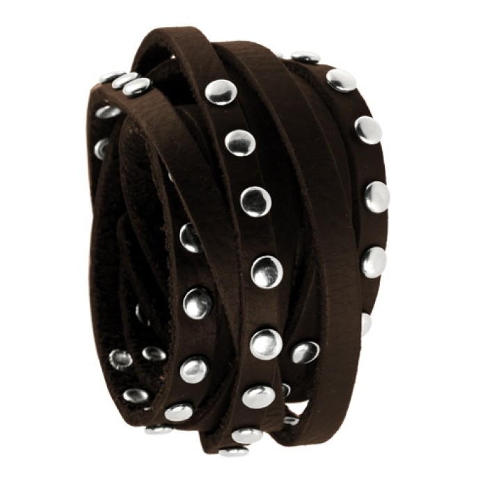 Unisex Lederarmband braun mit Nieten und Metallverschluss.