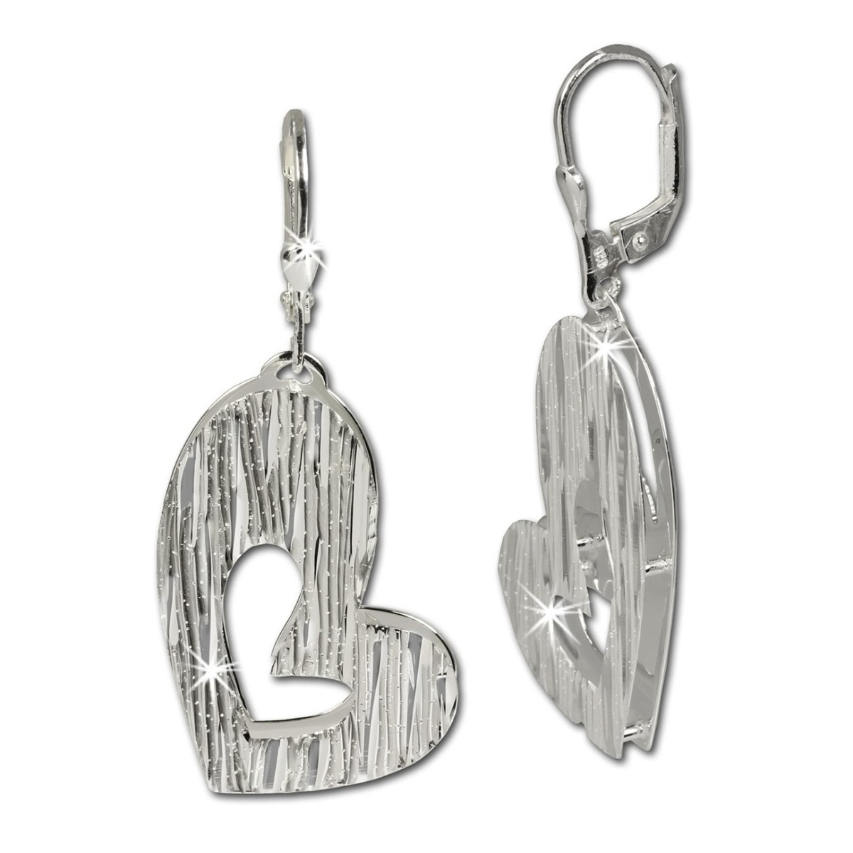 Ein Paar Ohrringe Doppelherz aus glänzenden, geschliffenen Elementen aus unserer SilberDream Schmuck Kollektion aus anlaufgeschütztem 925 Sterling Silber.
