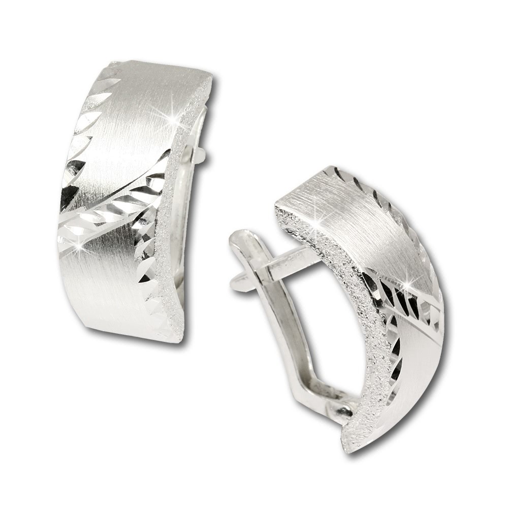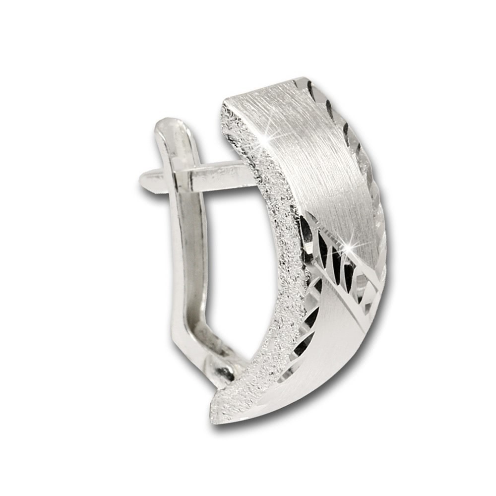 Schöner geschlifferer Ohrring mit gewölbtem diamantiertem Muster auf matter Oberfläche. Es ist ein sehr leichte Ohrringe aus unserer einzigartigen SilberDream Schmuck Kollektion aus anlaufgeschütztem 925 Sterling Silber.