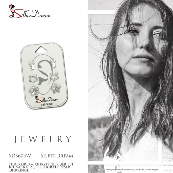 - Kurzbeschreibung: SilberDream Damenohrringe 3er Set: Blume, Katzenkopf, Fischgräte 925er Silber