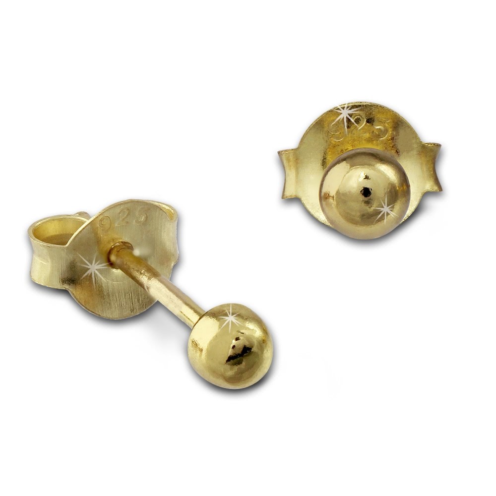 Ein Paar vergoldete Ohrstecker Kugel glänzend. Die glänzenden Ohrringe sind mit 585er Gold überzogen und bestehen aus 925 Sterling Silber. Sie sind aus unserer aktuellen SilberDream Schmuck Kollektion.