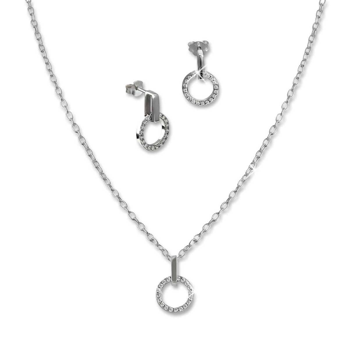 Ein hochwertiges Komplett Schmuck Set - Circle - Zirkonia weiß, bestehend aus einer Kette mit Anhänger und Ohrringe. Dieses Schmuckset ist aus unserer einzigartigen SilberDream Kollektion aus anlaufgeschütztem 925 Sterling Silber.