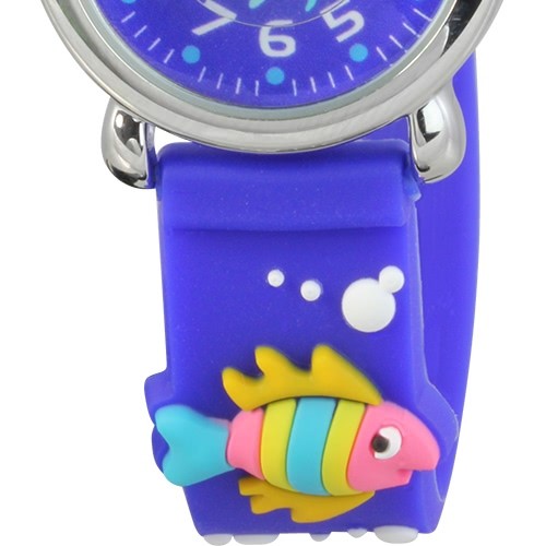 Diese niedliche Kinderuhr wurde mit einem kindgerechten Meeresweltenmotiv gestaltet. Die Fische, Seepferdchen sowie ein Krebs heben sich im 3D Effekt vom Armband ab. Ein gelber Fisch bewegt sich als Sekundenzeiger um das Ziffernblatt.- besondere Eigenschaften