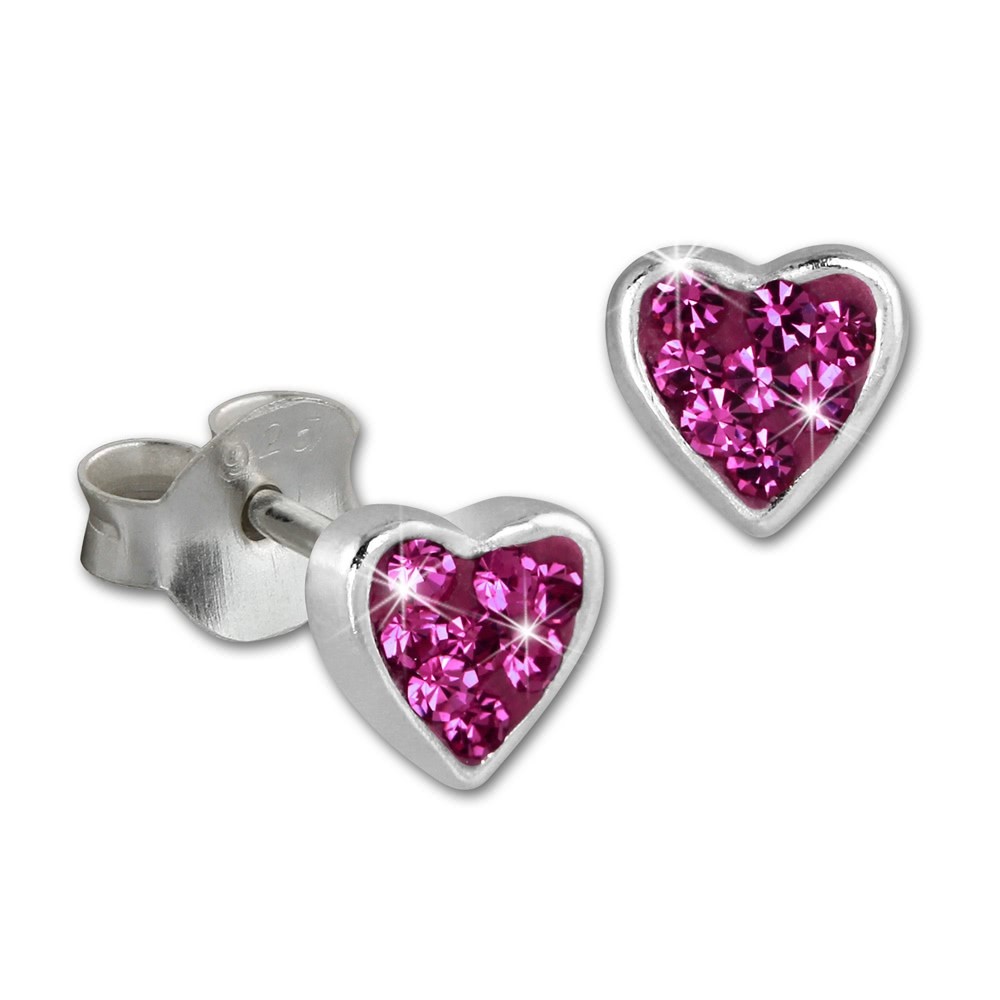 Ein Paar Kinder-Ohrstecker - Herzchen Zirkonia pink - Ohrringe aus unserer einzigartigen SilberDream Kollektion aus anlaufgeschütztem 925 Sterling Silber.