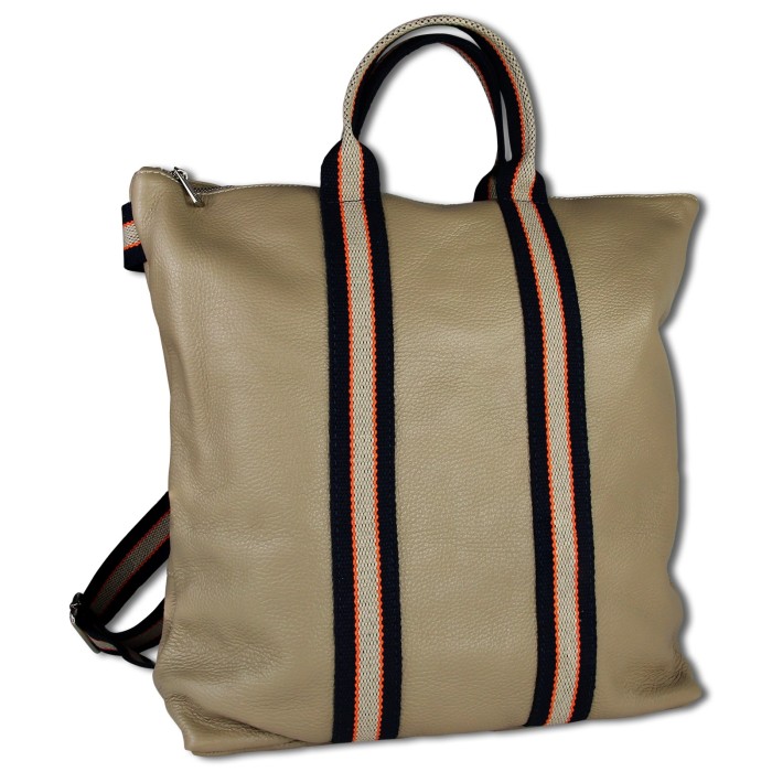 Toscanto Cityrucksack aus Leder, Canvas in taupe, blau, beige