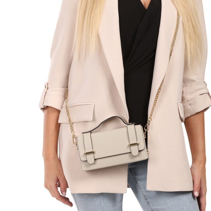 Diese trendige Damen Tasche von Toscanto aus der Toscanto Handbags Kollektion ist ein cooles Accessoire und ein echter Hingucker. Die beigee Tasche ist der ideale Begleiter für den eleganten Abend.Toscanto steht für hochwertige Lederarbeit und modisch designte Echtlederartikel aus Italien. Das verarbeiteten Leder unterliegt italienischen Qualitäts- und Herstellungsrichtlinien.