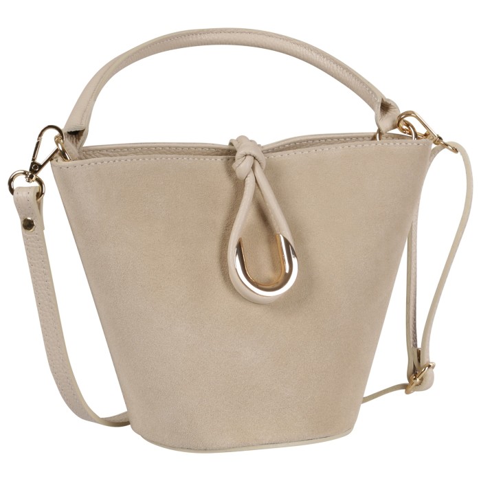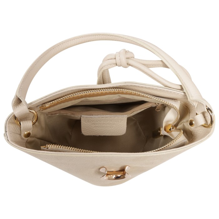 - Kurzbeschreibung: Handtasche in beige mit Reißverschluss, Knotenverschluss