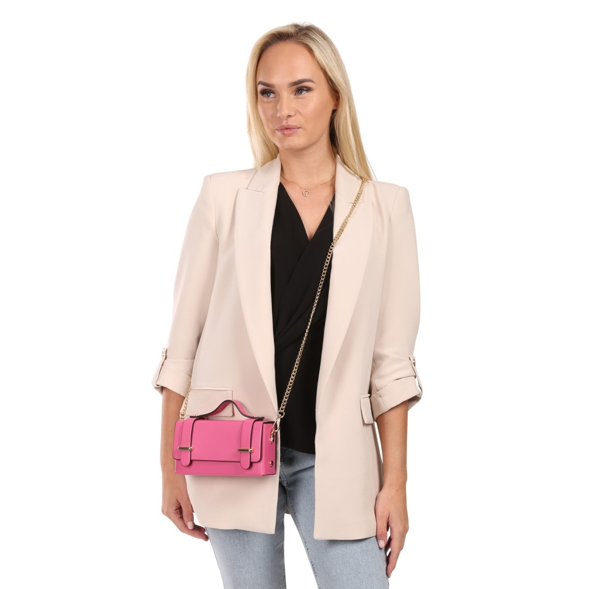 - Kurzbeschreibung: Handtasche in fuchsia, rosa mit Magnetverschluss