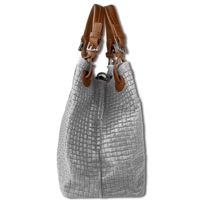 Toscanto Handtasche, Umhängetasche aus Leder in grau, braun