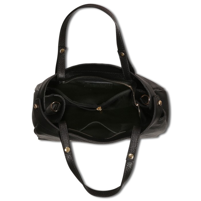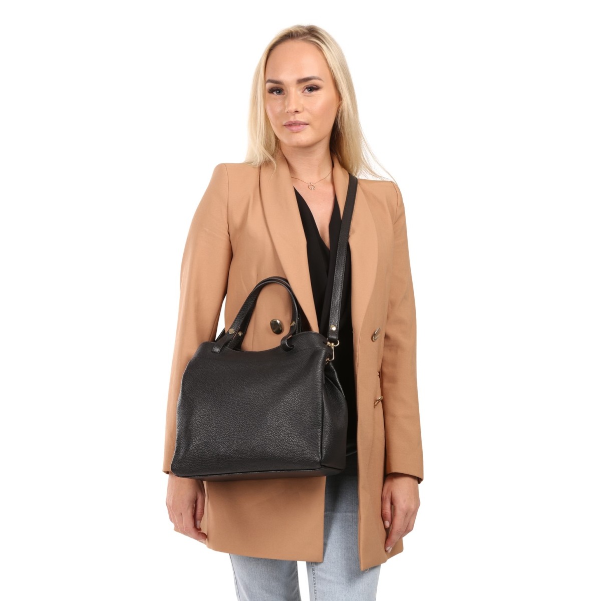 Diese trendige Damen Tasche von Toscanto aus der Toscanto Handbags Kollektion ist ein cooles Accessoire und ein echter Hingucker. Die schwarze Tasche ist der ideale Begleiter für den eleganten Abend.Toscanto steht für hochwertige Lederarbeit und modisch designte Echtlederartikel aus Italien. Das verarbeiteten Leder unterliegt italienischen Qualitäts- und Herstellungsrichtlinien.