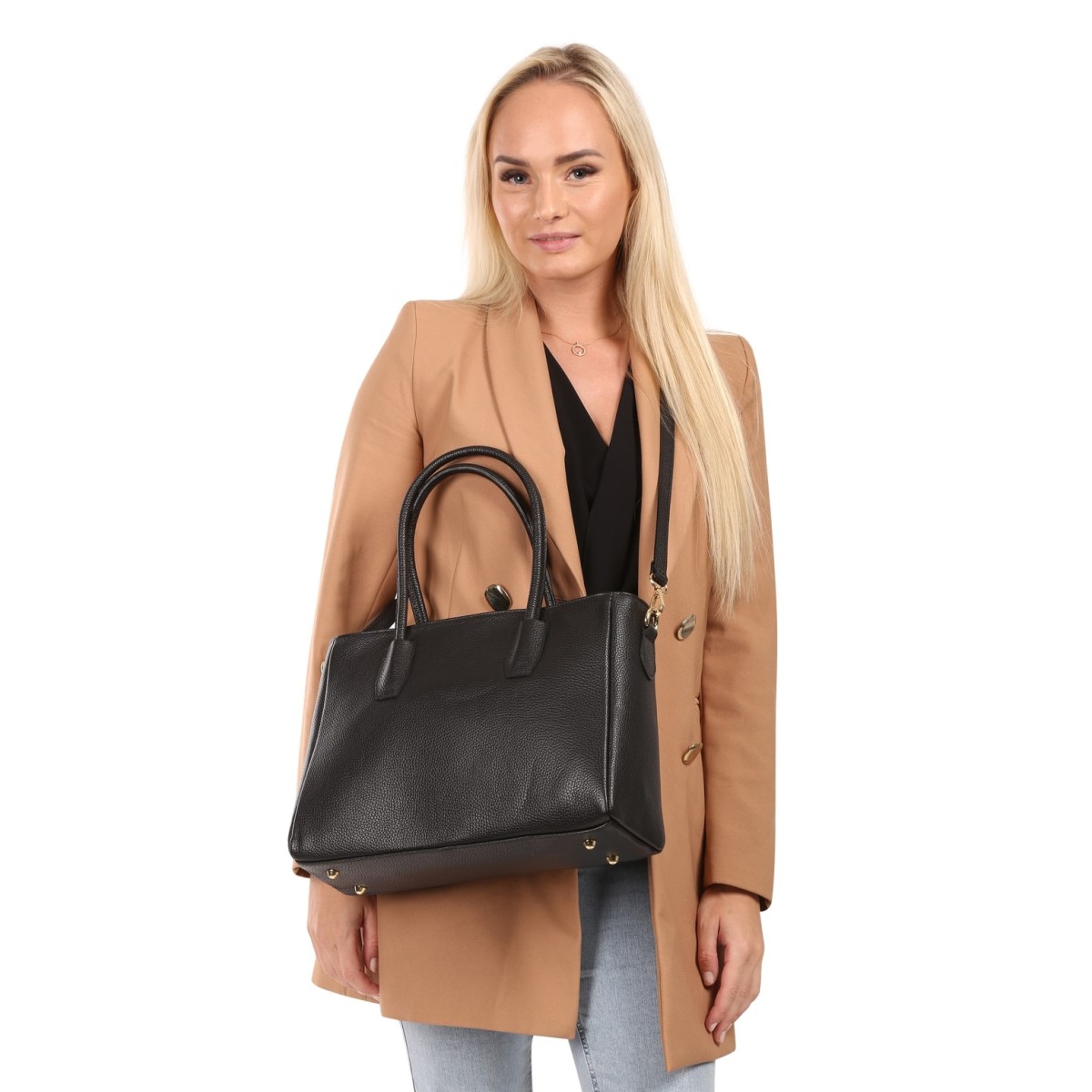 Diese trendige Damen Tasche von Toscanto aus der Toscanto Handbags Kollektion ist ein cooles Accessoire und ein echter Hingucker. Die schwarze Tasche ist der ideale Begleiter für den eleganten Abend.Toscanto steht für hochwertige Lederarbeit und modisch designte Echtlederartikel aus Italien. Das verarbeiteten Leder unterliegt italienischen Qualitäts- und Herstellungsrichtlinien.