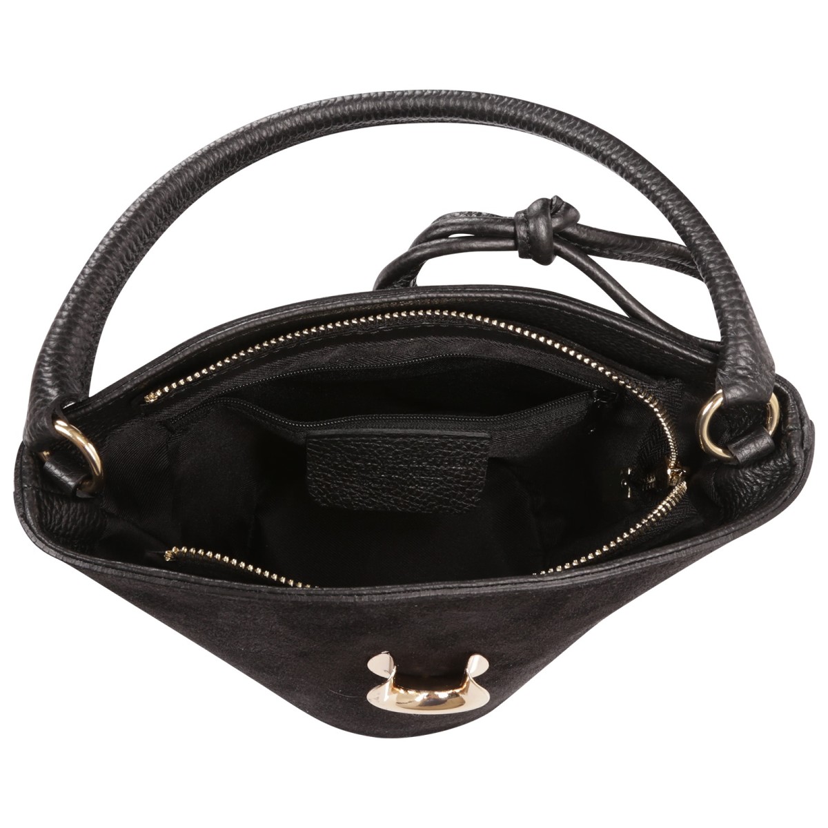 - Kurzbeschreibung: Handtasche in schwarz mit Reißverschluss, Knotenverschluss