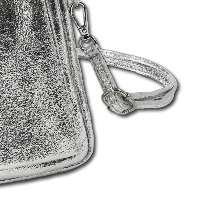 Diese trendige Damen Tasche von Toscanto aus der Toscanto Handbags Kollektion ist ein cooles Accessoire und ein echter Hingucker. Die silbere Tasche ist der ideale Begleiter für den eleganten Abend.Toscanto steht für hochwertige Lederarbeit und modisch designte Echtlederartikel aus Italien. Das verarbeiteten Leder unterliegt italienischen Qualitäts- und Herstellungsrichtlinien.